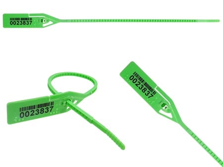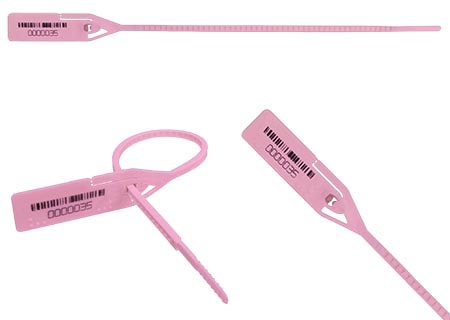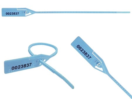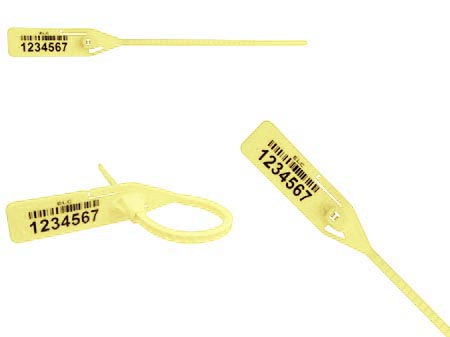 Sello plástico con codificación y personalización inkjet directamente sobre la lámina del sello, las dos en el mismo lado.