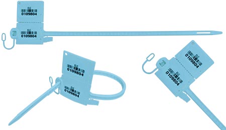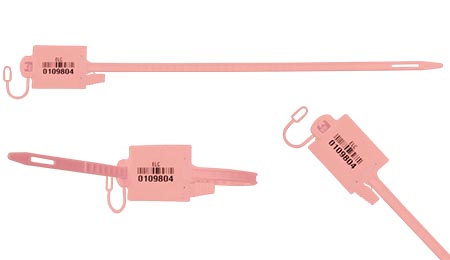 Sellos en una sola pieza y ajustable para distintos tamaños de saco. El sello standard viene con lazo portaetiqueta, la punta rayada de la lámina para fácil remoción, y acompañado de una herramienta para la apretadura deseada. Recibo numerado y nylon como materia prima, son elementos opcionales. Personalización y codificación disponibles en hot-stamp o IML.