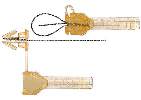 Compuestos de cápsula, ancla, numeración en alto relieve y opciones de alambres, cintas e hilos plásticos de cierre.